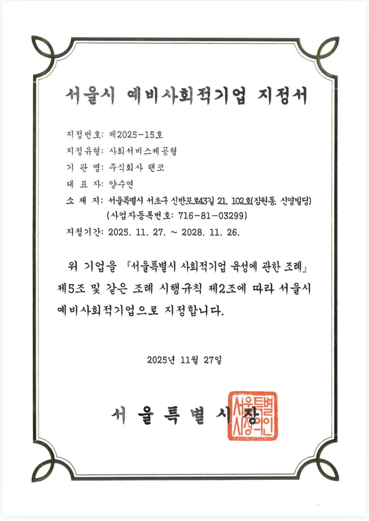 | 대표자 | 양수연 | 연락처 | 01022843886 |